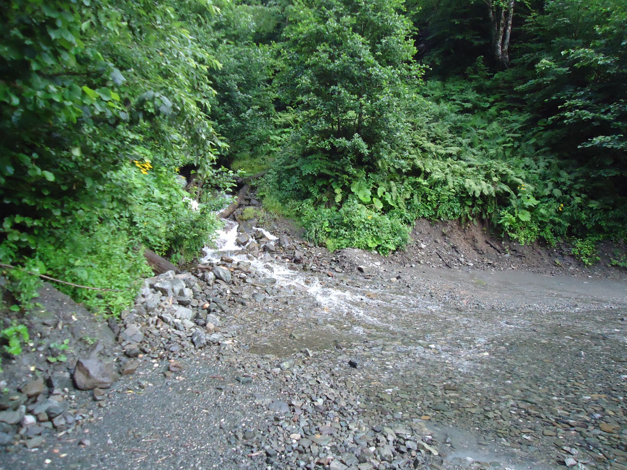 из-за дождей дорогу перекатывают ручьи
