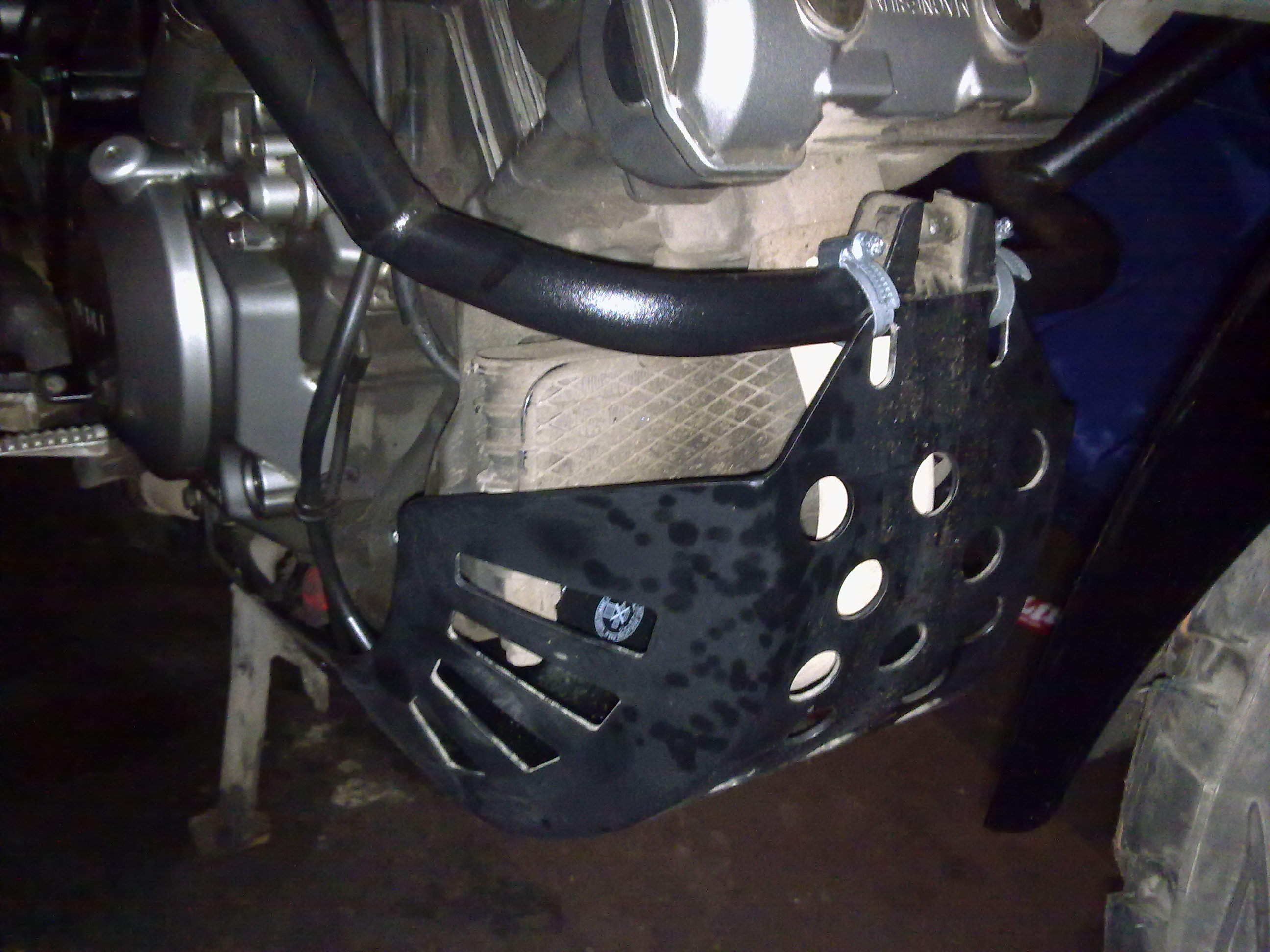 Знал бы ты сколько я матерился вчера и сегодня пока ставил защиту это писец. Желание было взять всё и у*бать >:( у меня ещё проблема возникла с те, что дуги в меня стоят не ГИВИ(под мои нужно изъебнуться хорошенько) Сама защита сделана отлично, только вот крепеж к подножке коротковат. Его пришлось натягивать из-за чего эта пластина немного дугой получилась. А болы под крестовую отвертку(не успел наживить, грани стерлись) я нахер заменил на обычные под ключ. Пусть лучше торчат немного, зато проще ставить. Фотки даже не стал делать ;D