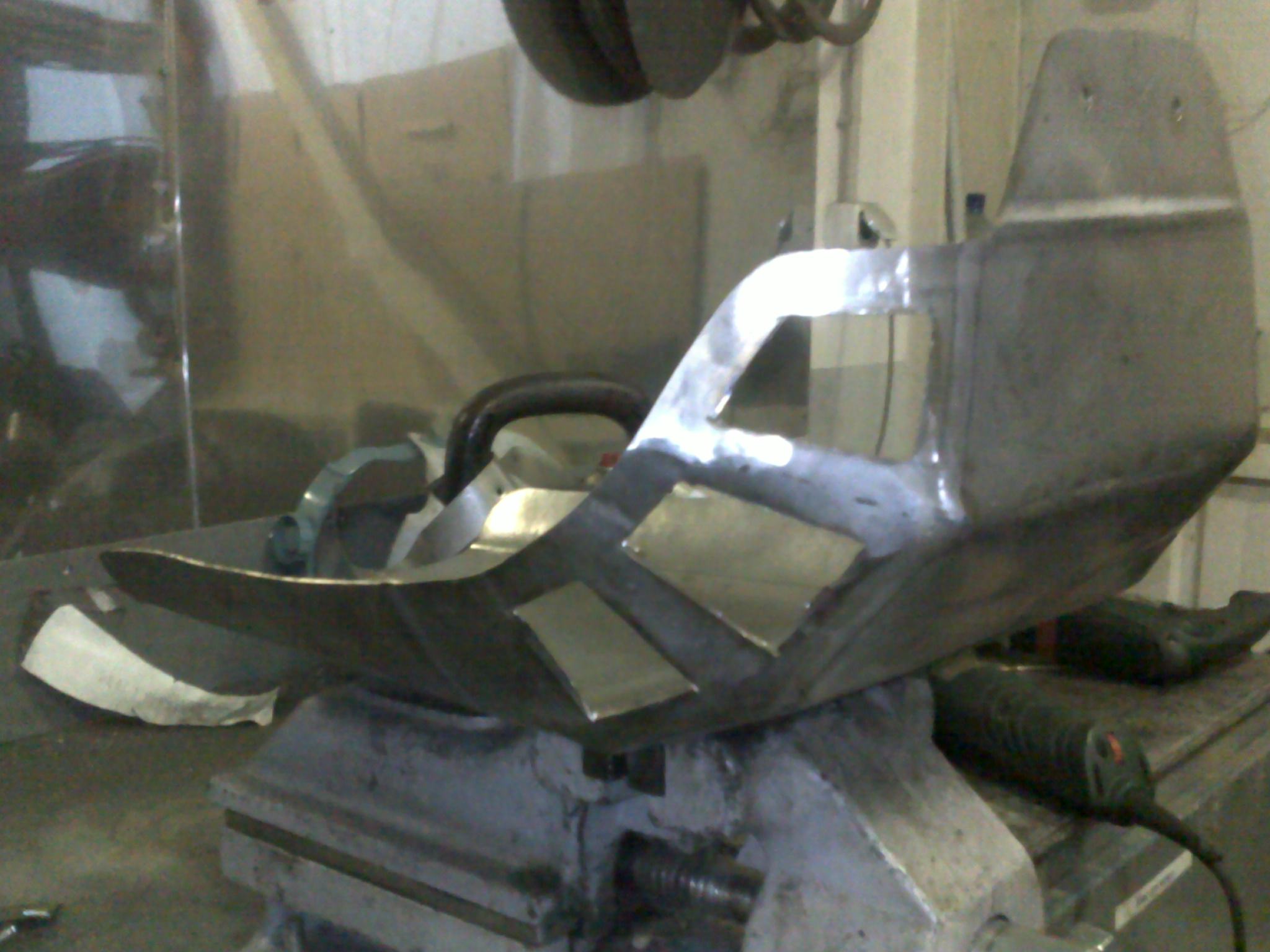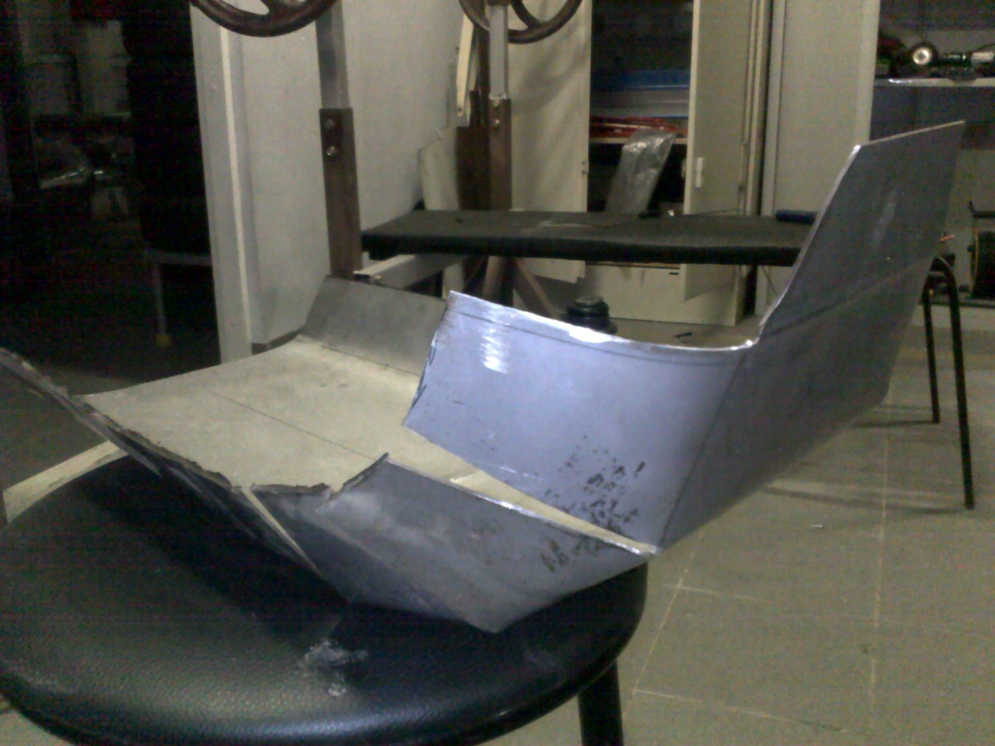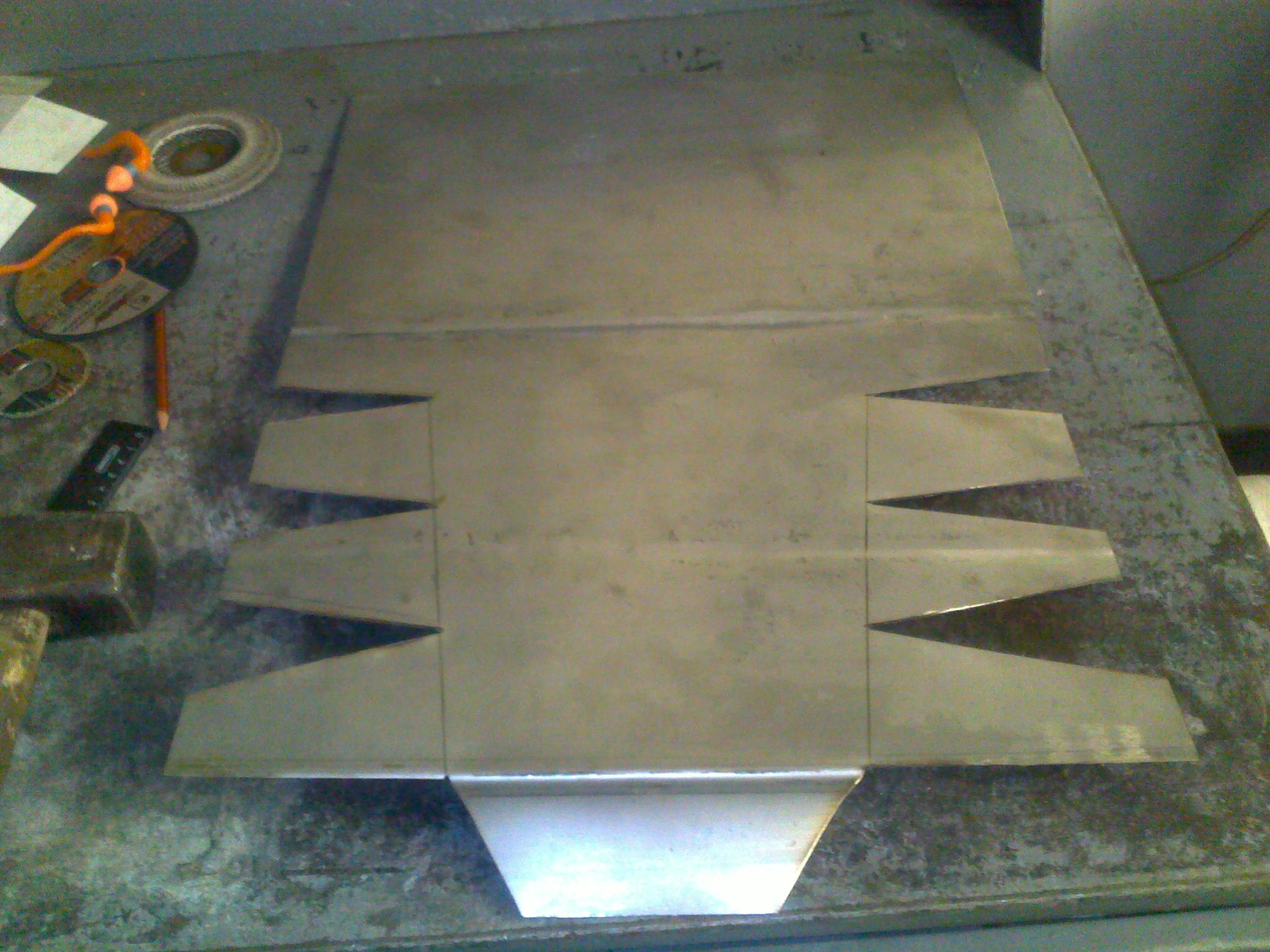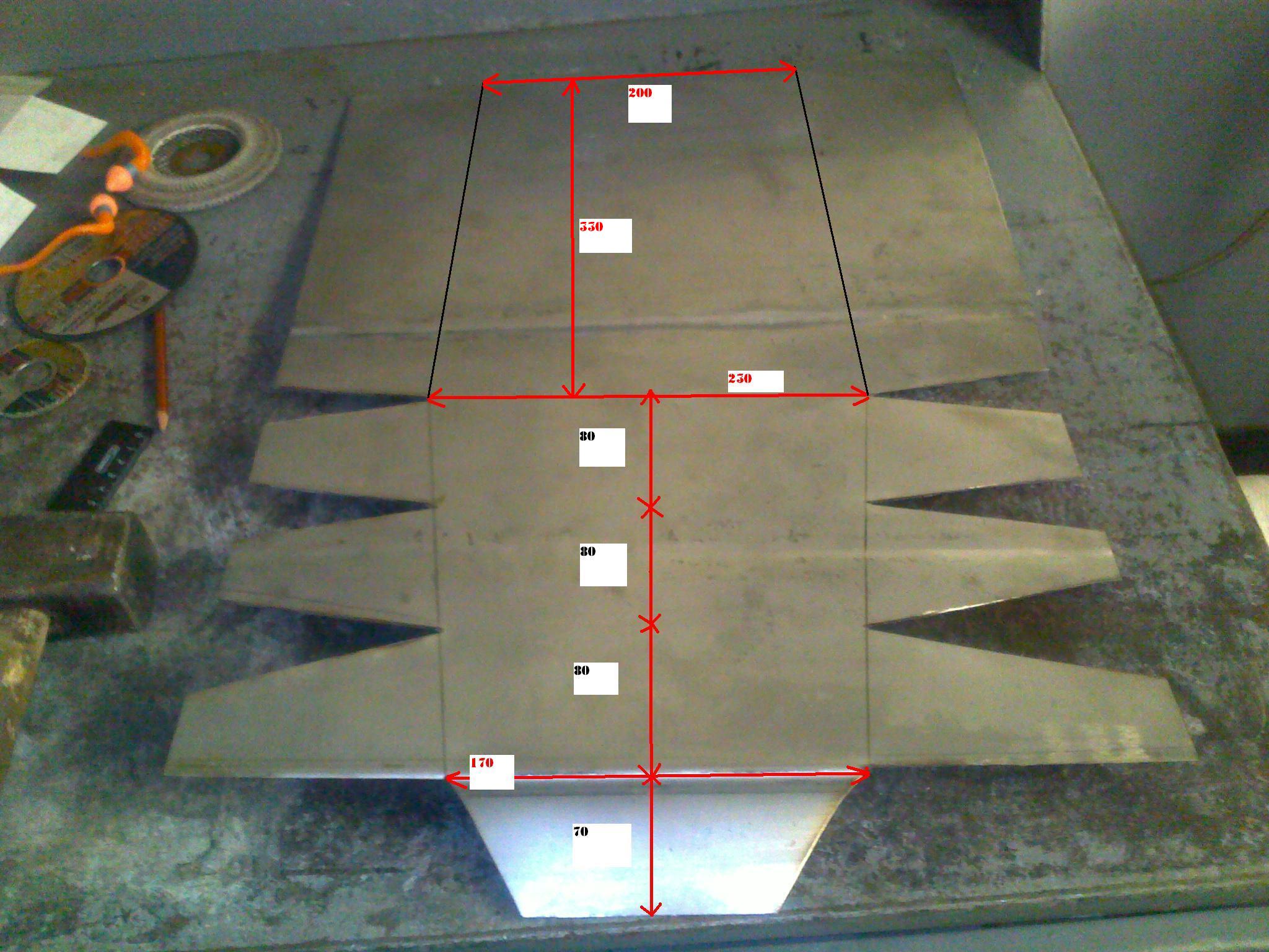 В следующей, доработанной версии, скруглю. Здесь металл-трёшка. Я его просто гнуть, задолбался, не то что скруглить ровно. Буду делать из полторашки, и делать три изгиба, и верх заводить не на наружную сторону дуги, а на внутреннюю. И борта чуть поменьше, для изящества))