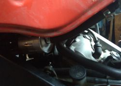 Сам фильтр поместился около сервопривода но пришлось придумывать жесткое крепление что бы фильтр не болтался и не мешал блоку дроссельных заслонок, в головке заднего цилиндра как раз нашлось отверстие с резьбой (М10)